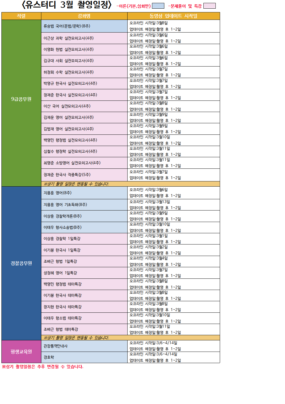 *유스터디 2017년 3-4월 신규 촬영, 업그레이드 예정 과목입니다.*