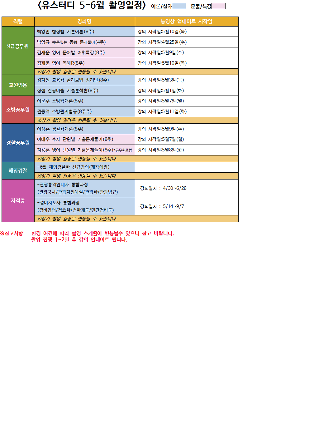 *유스터디 2018년 5-6월 신규 촬영, 업그레이드 예정 과목입니다.*