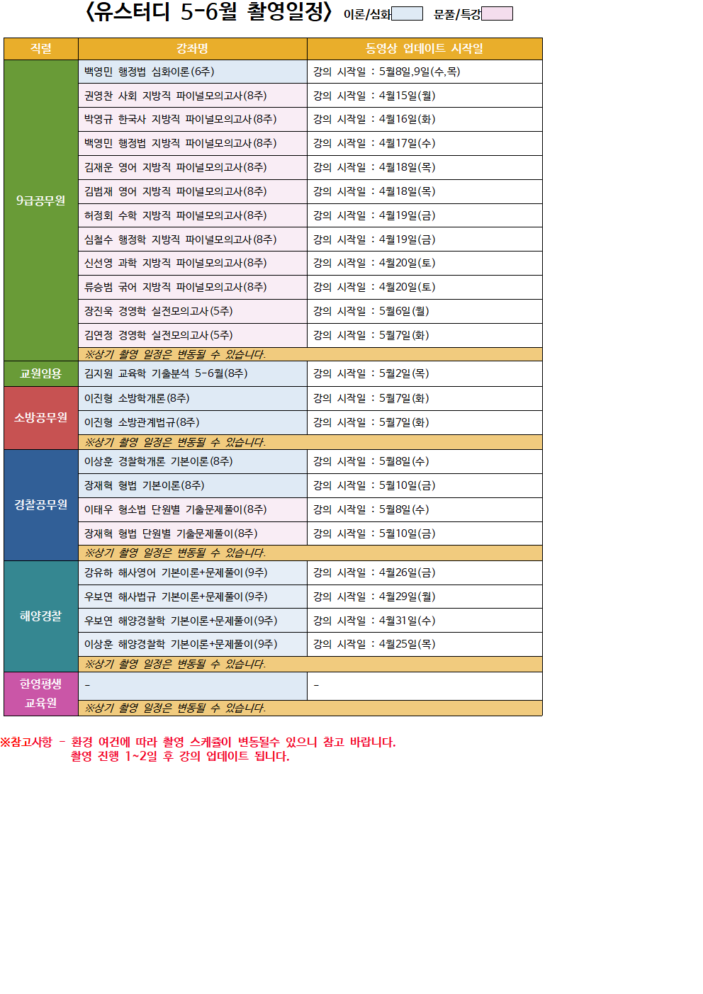 *유스터디 2019년 5-6월 신규 촬영, 업그레이드 예정 과목입니다.*