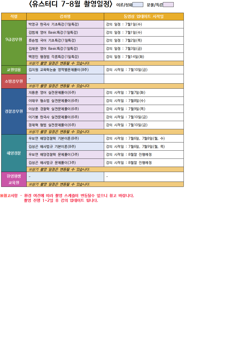 *유스터디 2020년 7-8월 신규 촬영, 업그레이드 예정 과목입니다.*