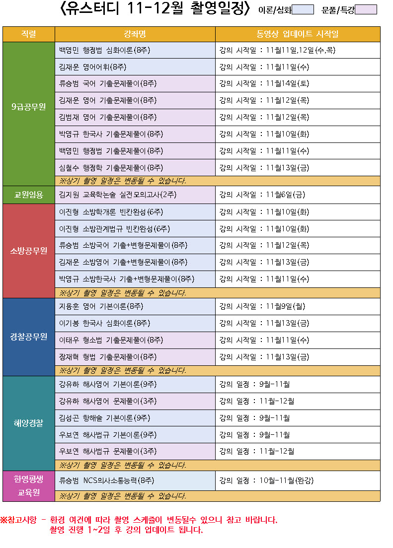 *유스터디 2020년 11-12월 신규 촬영, 업그레이드 예정 과목입니다.*