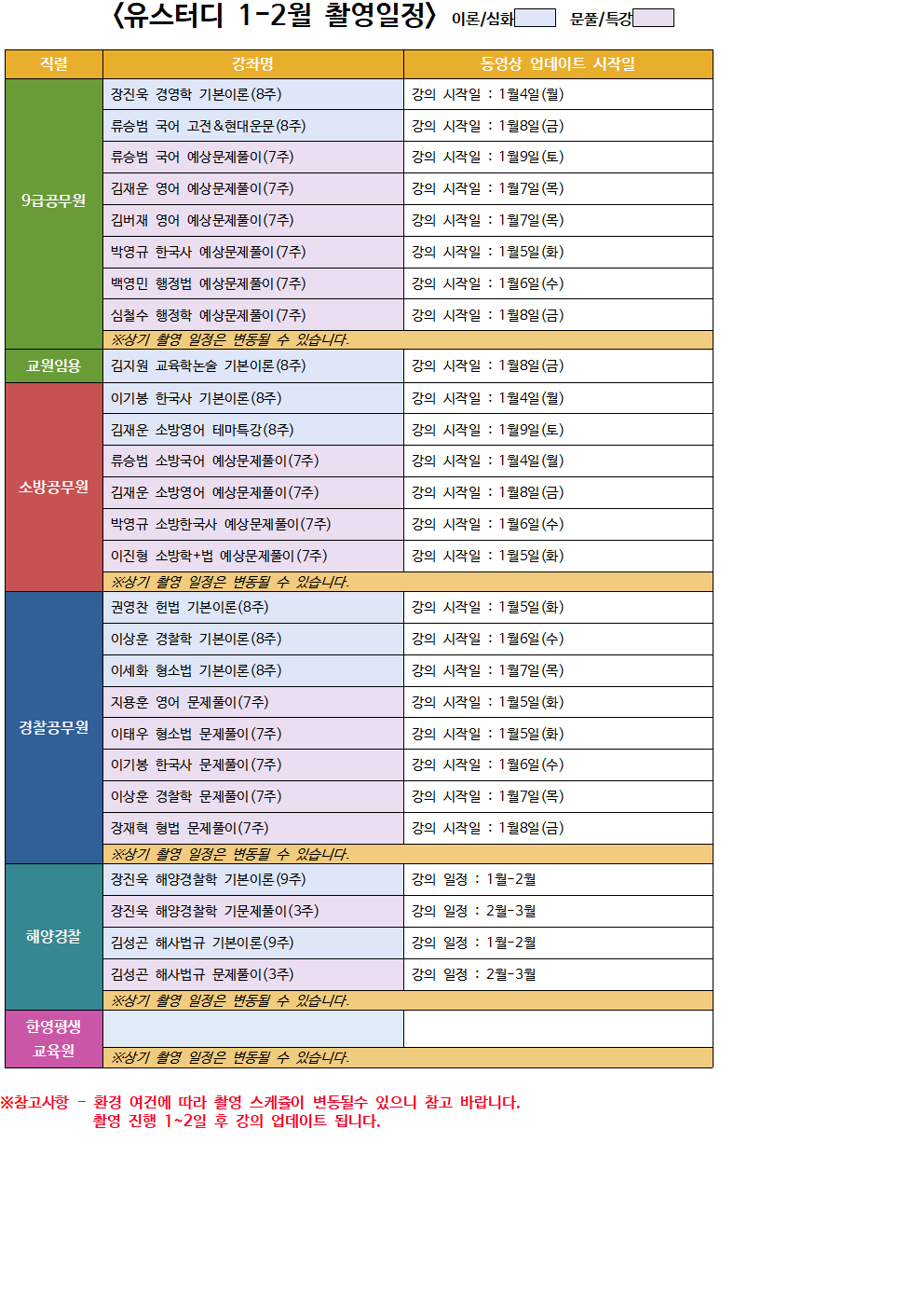 *유스터디 2021년 1-2월 신규 촬영, 업그레이드 예정 과목입니다.*