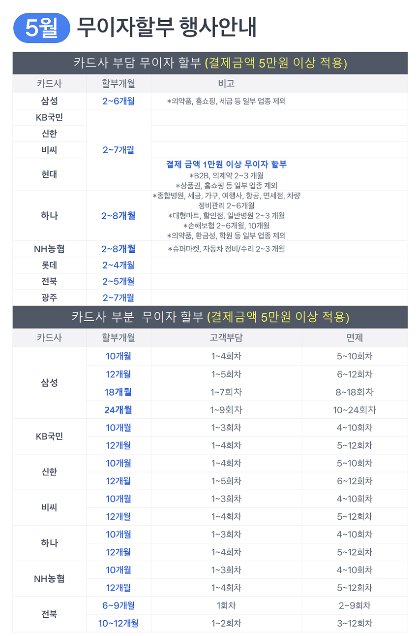 [이벤트]2022년5월 카드 무이자 할부 행사 안내