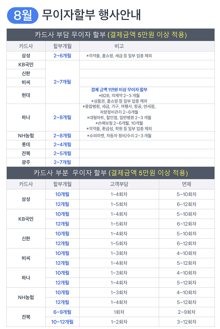[이벤트]2022년8월 카드 무이자 할부 행사 안내