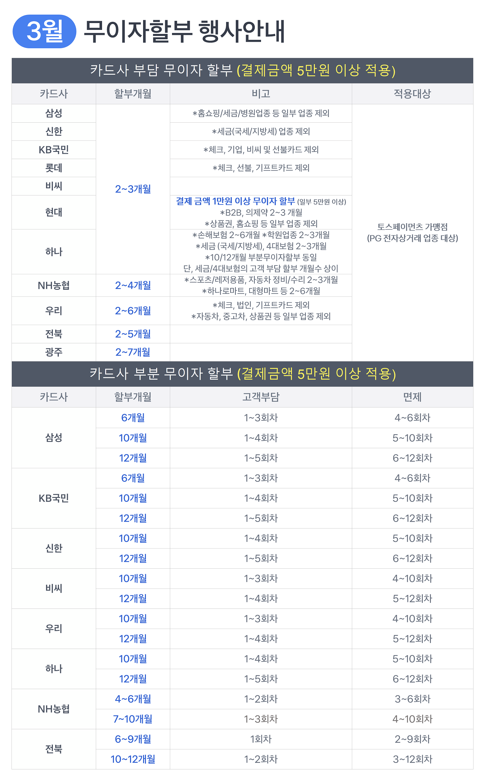 [이벤트]2023년3월 카드 무이자 할부 행사 안내