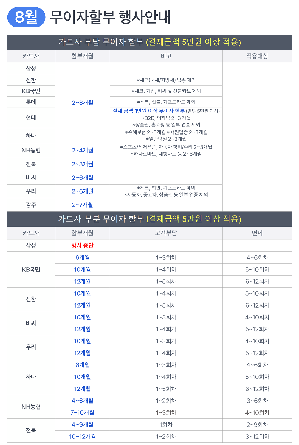 [이벤트]2023년8월 카드 무이자 할부 행사 안내
