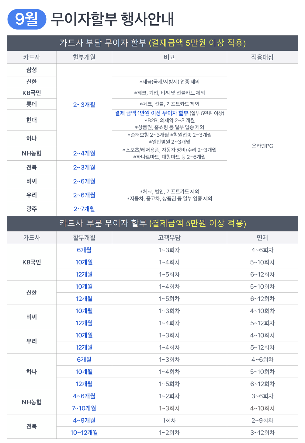 [이벤트]2023년9월 카드 무이자 할부 행사 안내