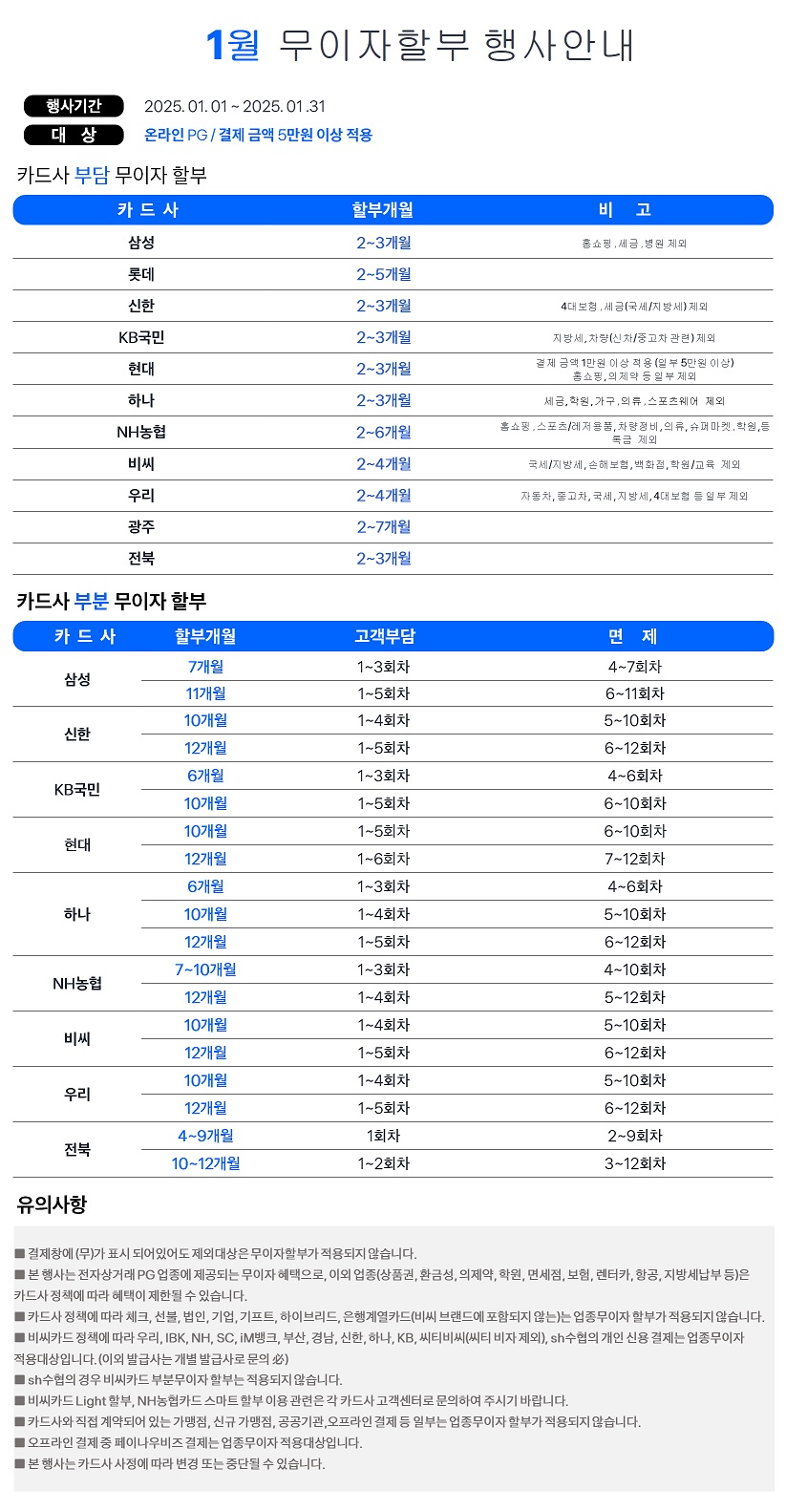 [이벤트]2025년 1월 카드 무이자 할부 행사 안내