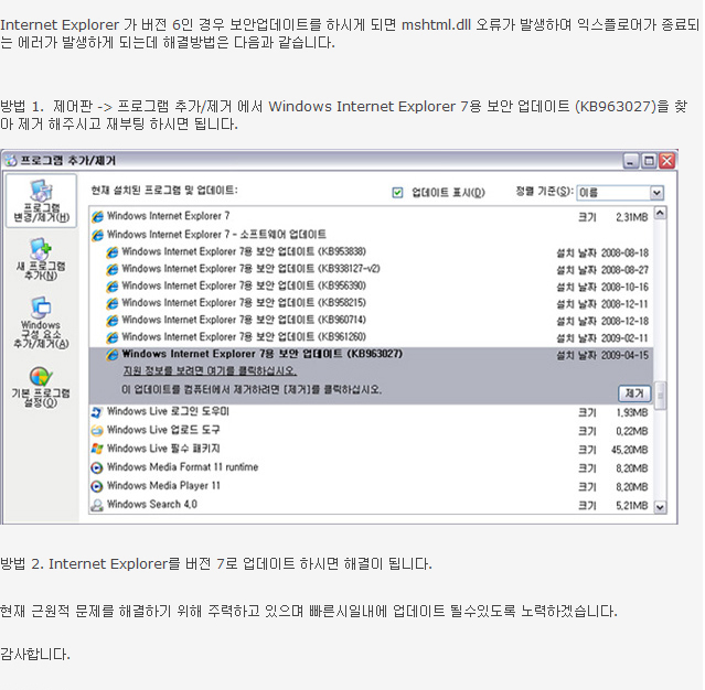 인터넷창 종료 오류안내