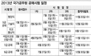 2013년 국가공무원 공채시험 일정(7.9급공무원)조회수 : 2,461