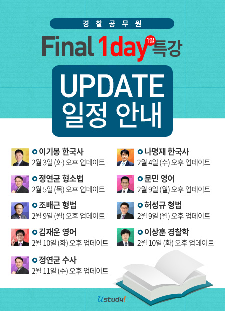 2015년 경찰공무원 1차 시험대비 파이널 1일특강 업데이트 일정 안내 입니다.