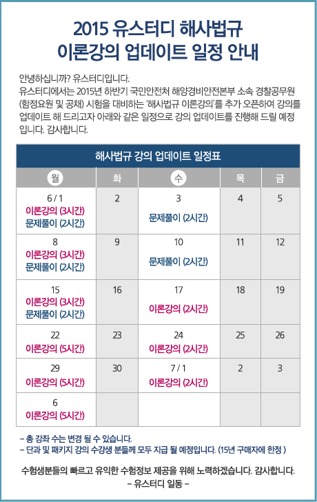 [국민안전처] 15년 시험대비 해사법규 이론강의 업데이트 일정안내