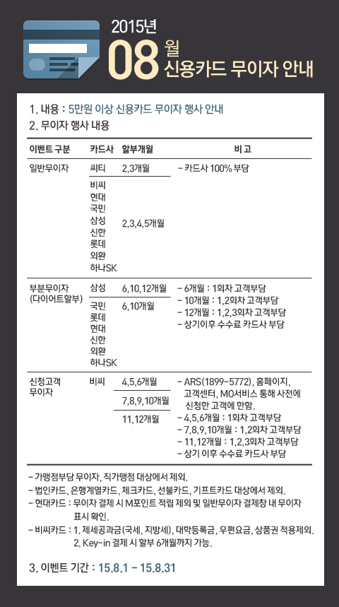 8월 신용카드 무이자안내