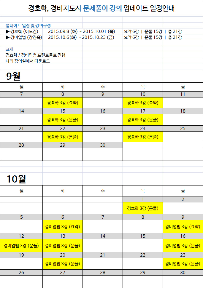 • [자격증]경비지도사 문제풀이 강의 업데이트 일정 안내