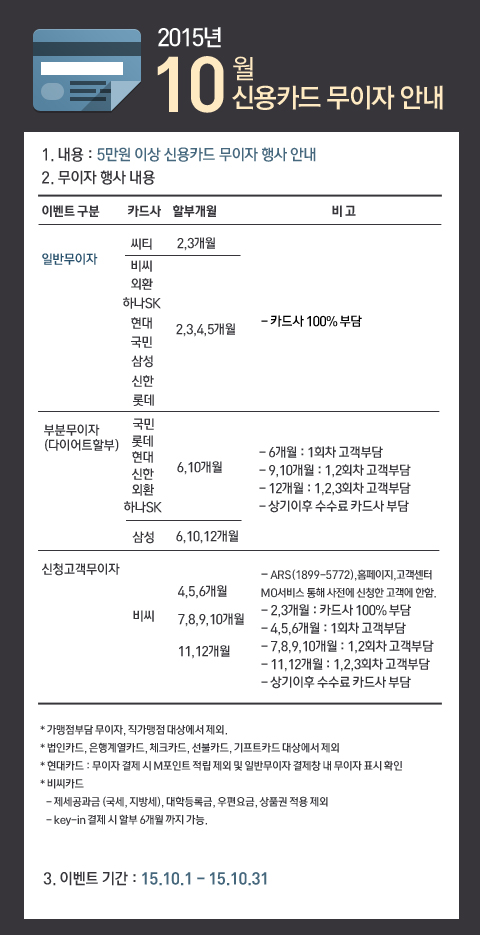 [신용카드] 2015년 10월 신용카드 무이자 안내