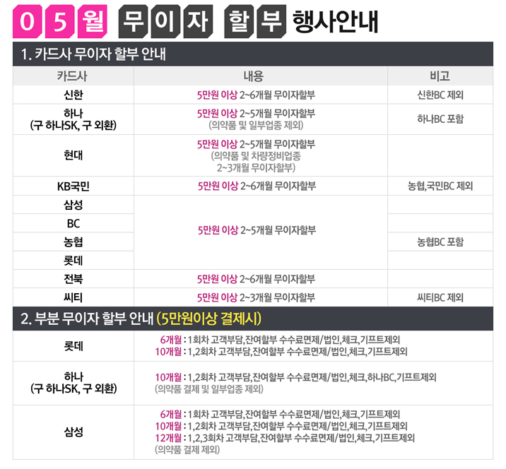 [이벤트] 5월 카드 무이자 할부 행사 안내