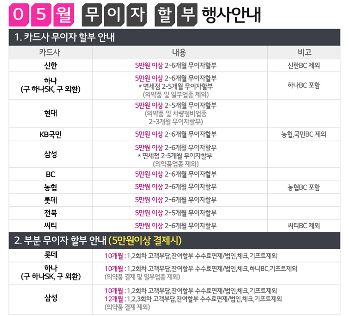 [이벤트]2018년5월 카드 무이자 할부 행사 안내