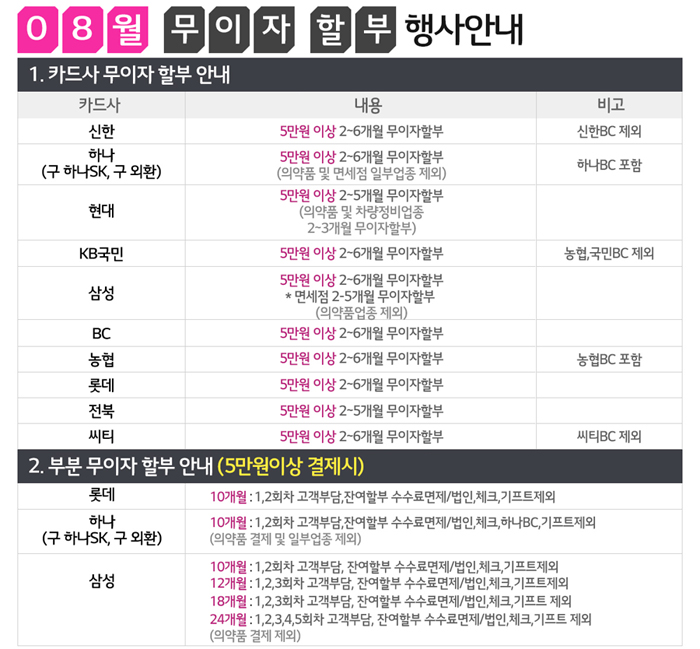 [이벤트]2018년8월 카드 무이자 할부 행사 안내