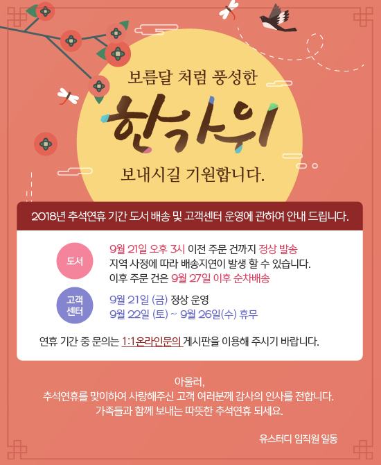 ※ 유스터디 추석 연휴기간 고객센터 운영 관련 및 무통장입금 확인 안내조회수 : 487