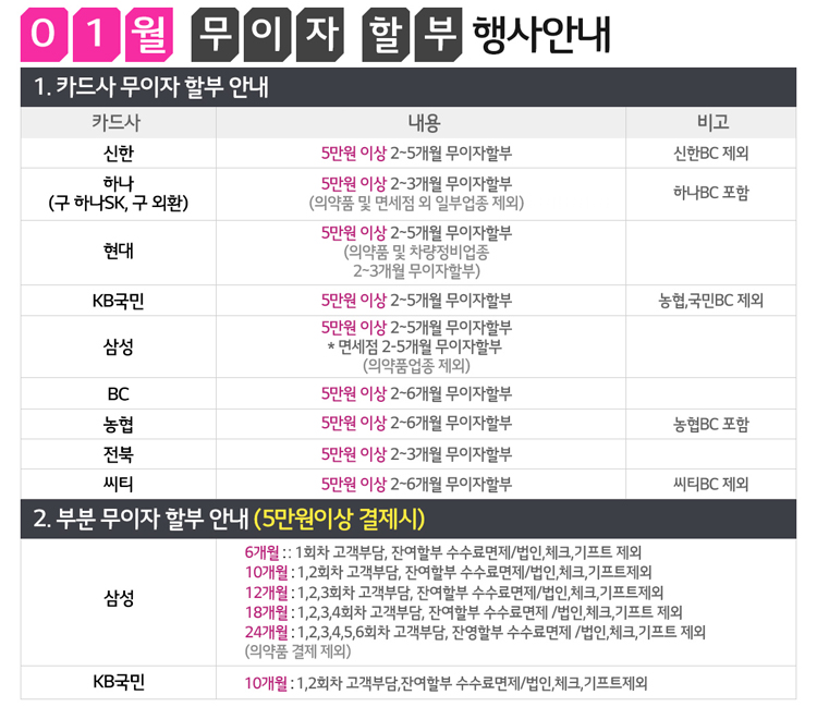 [이벤트]2019년1월 카드 무이자 할부 행사 안내