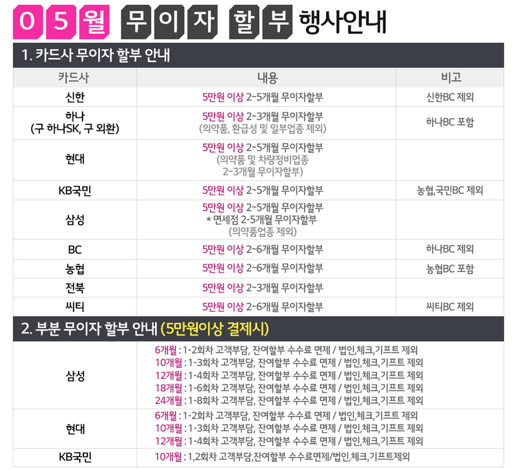 [이벤트]2019년5월 카드 무이자 할부 행사 안내