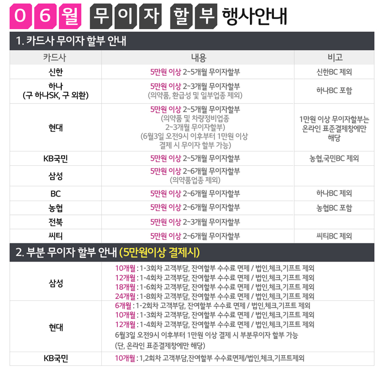 [이벤트]2019년6월 카드 무이자 할부 행사 안내
