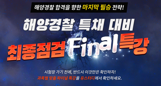 2019 해양경찰 3차 특채 - 최종점검 Final 특강 업로드 및 교재 관련 공지조회수 : 728