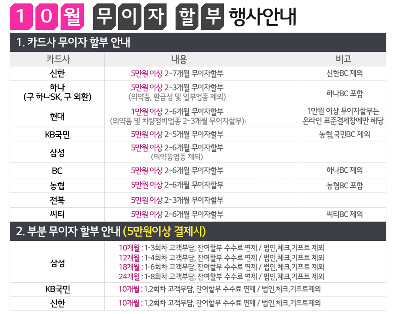[이벤트]2019년10월 카드 무이자 할부 행사 안내