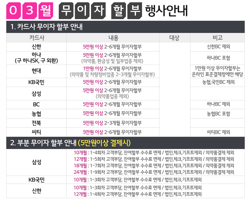 [이벤트]2020년3월 카드 무이자 할부 행사 안내