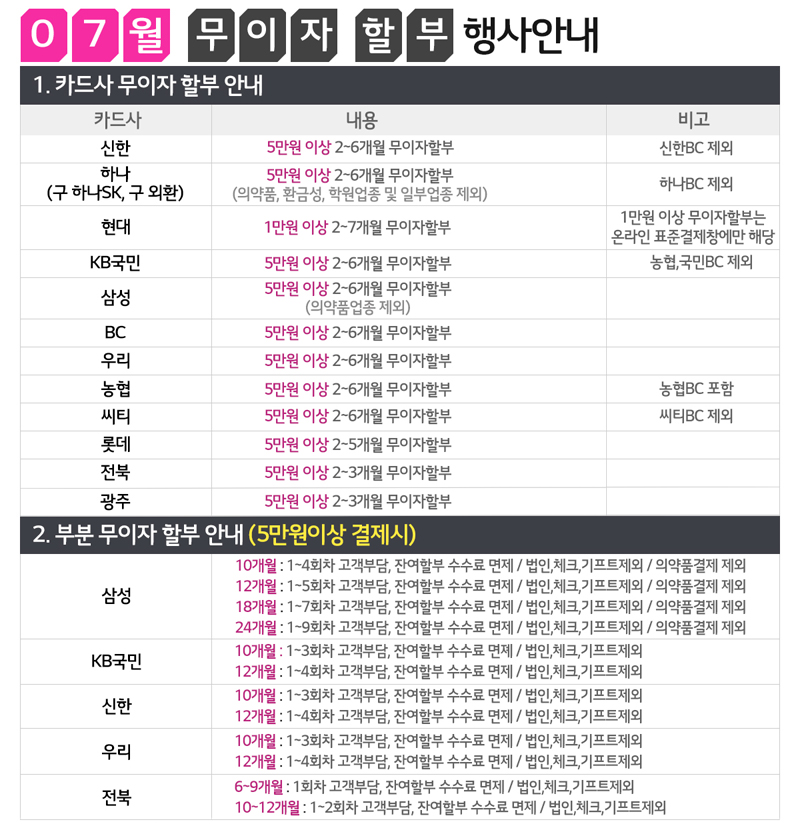 [이벤트]2020년7월 카드 무이자 할부 행사 안내
