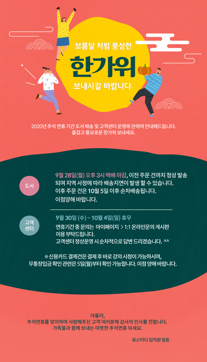 2020 추석연휴 도서배송 및 고객센터 운영에 관하여 안내 드립니다.