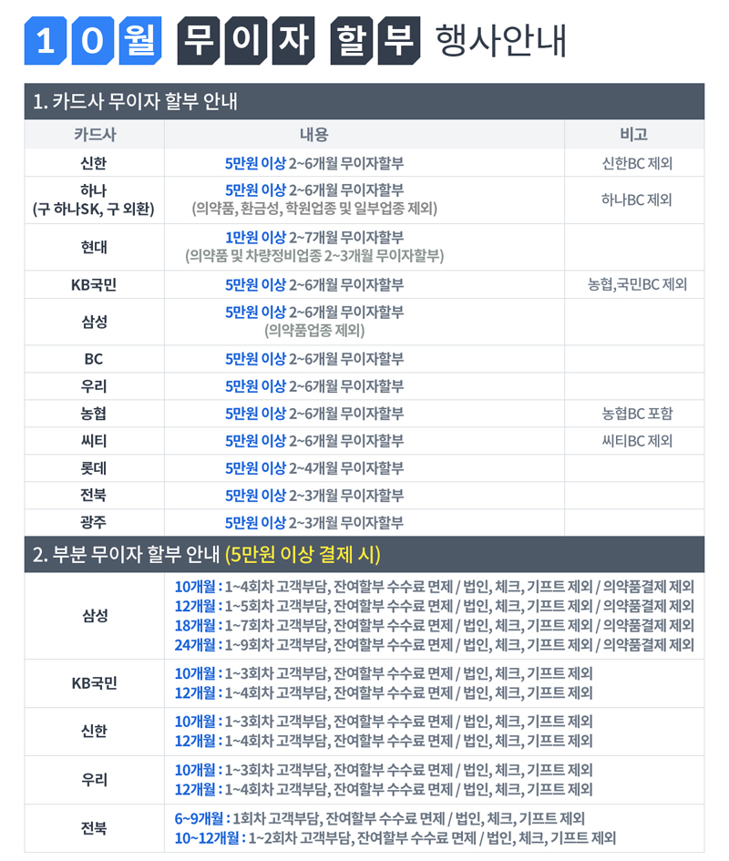 [이벤트]2020년10월 카드 무이자 할부 행사 안내