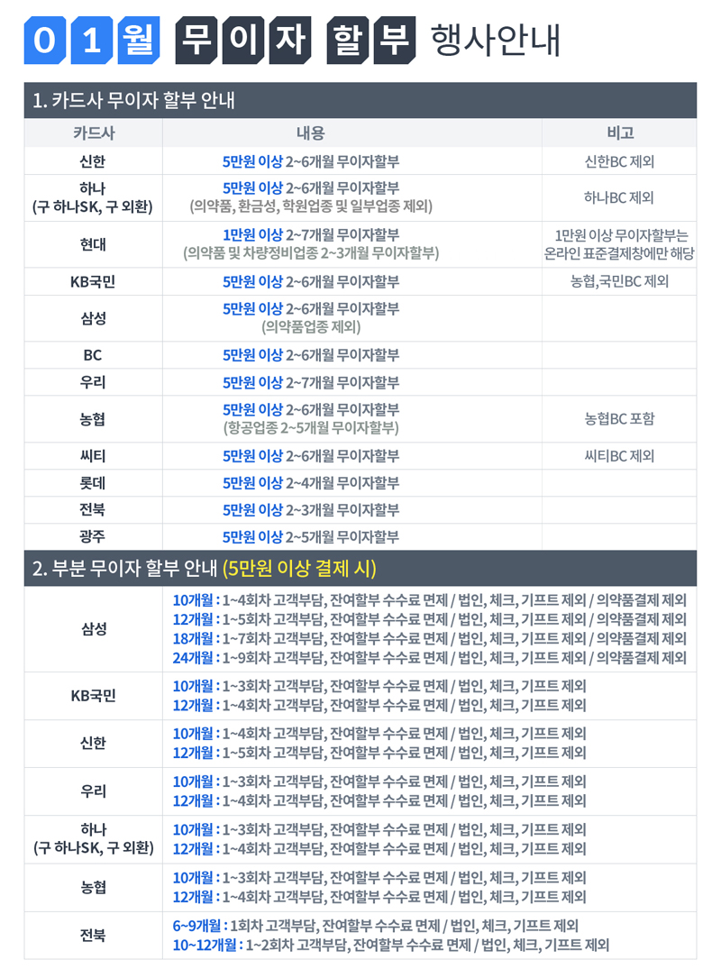 [이벤트]2021년1월 카드 무이자 할부 행사 안내