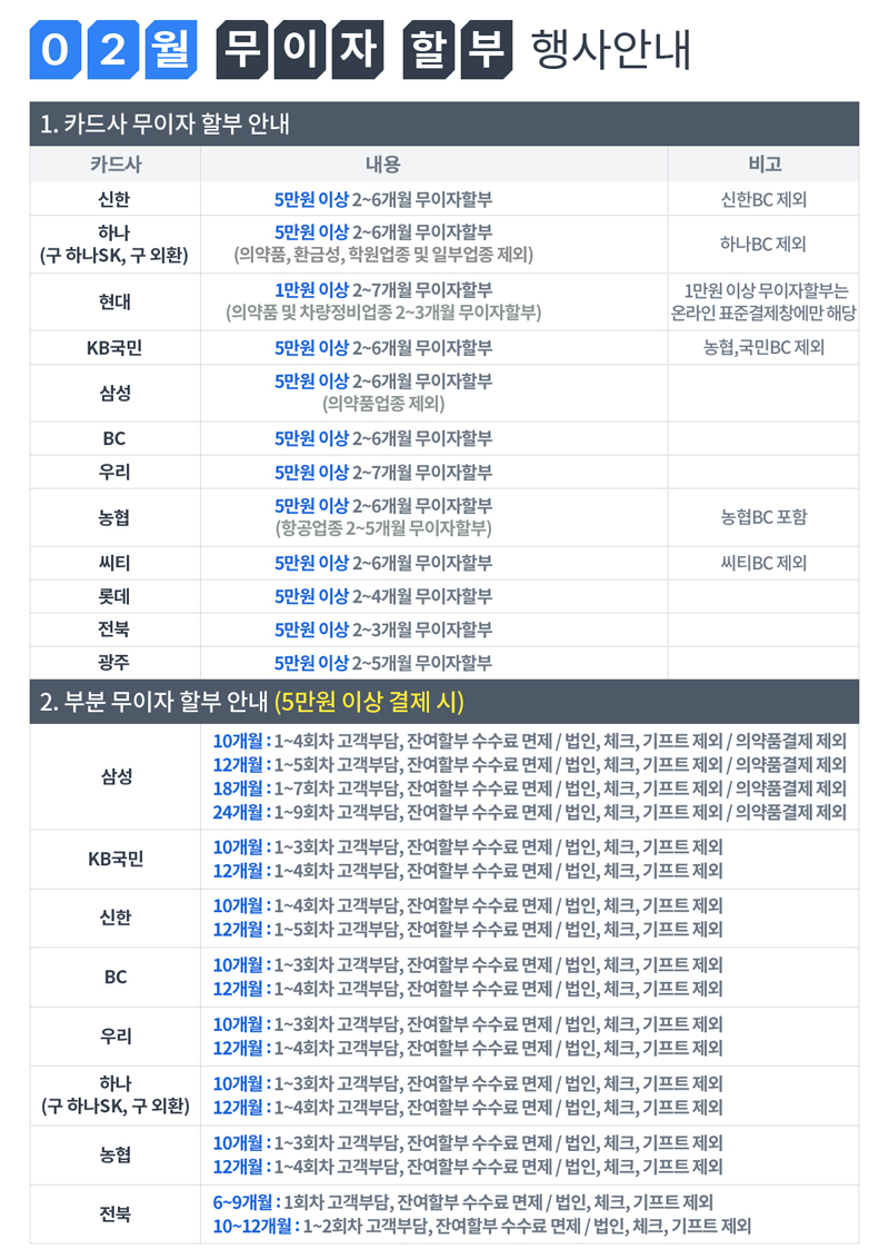 [이벤트]2021년2월 카드 무이자 할부 행사 안내