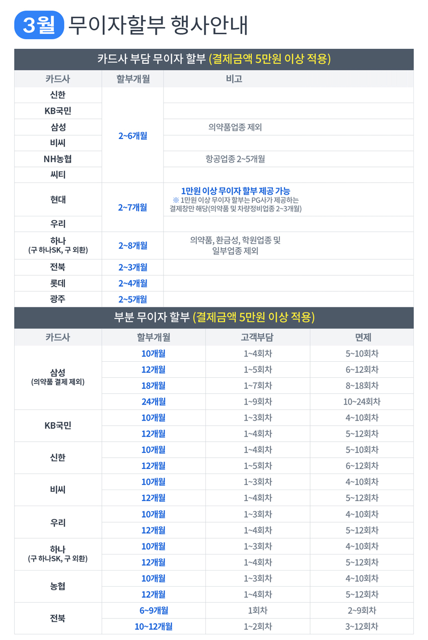 [이벤트]2021년3월 카드 무이자 할부 행사 안내
