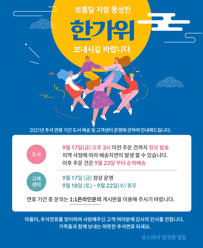 2021 추석연휴 도서배송 및 고객센터 운영에 관하여 안내 드립니다.