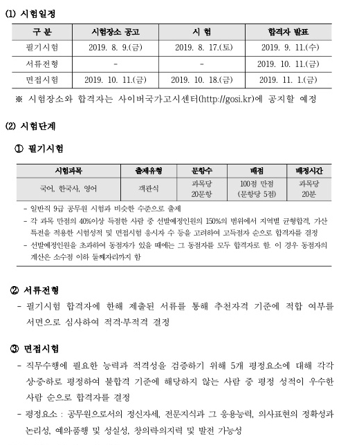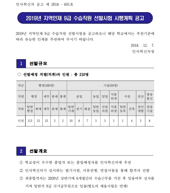 ▶ 2019 인사혁신처 지역인재 9급 수습직원 선발시험 시행 공고조회수 : 177