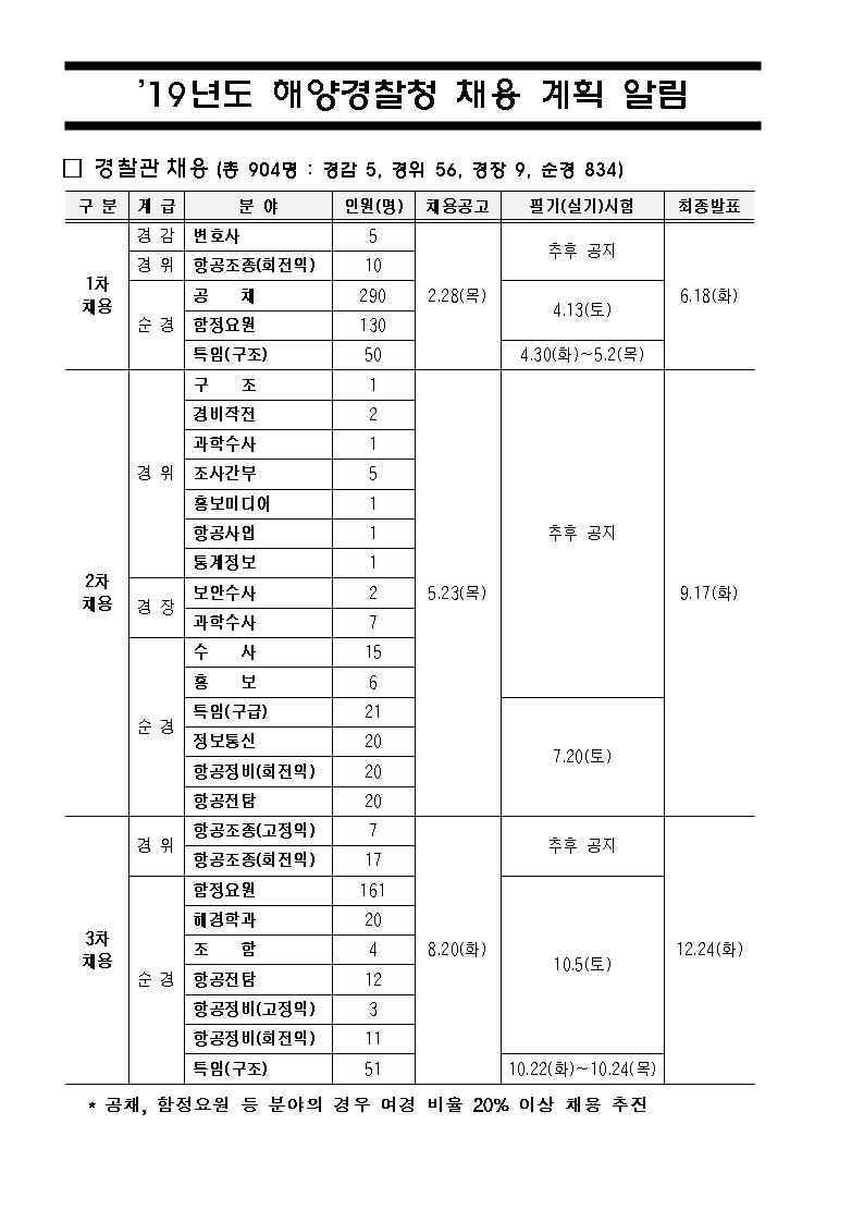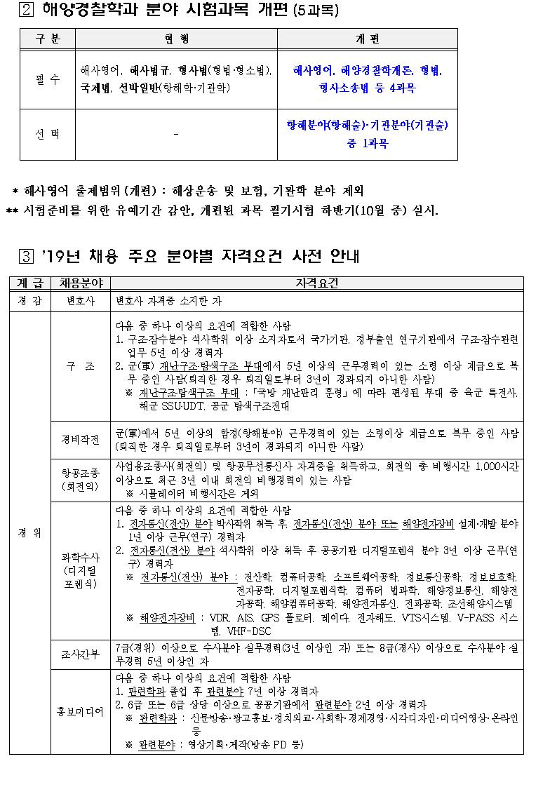 ▶ 2019년 해양경찰청 채용 계획 공고 + 변경되는 채용제도조회수 : 4,324