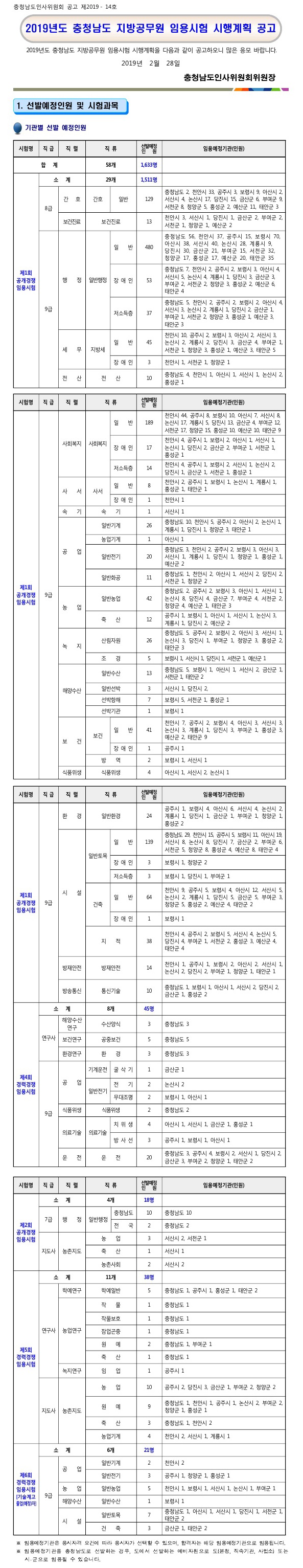 ▶ 2019 충남 지방공무원 임용시험 시행계획 공고조회수 : 134