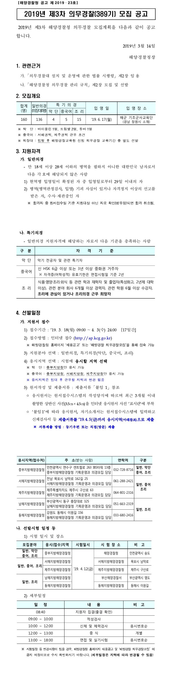▶ 2019 제3차 해양경찰청 의무경찰(398기) 모집 공고(~4.3)조회수 : 227