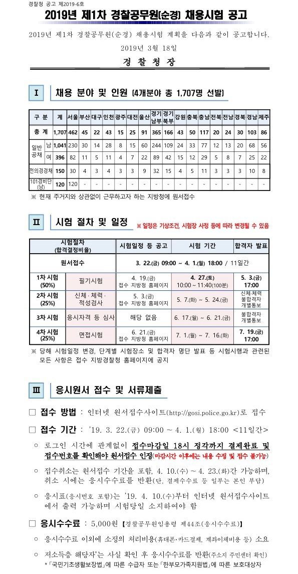 ▶ 2019 제1차 경찰청 경찰공무원(순경) 채용시험 공고(~4.1)