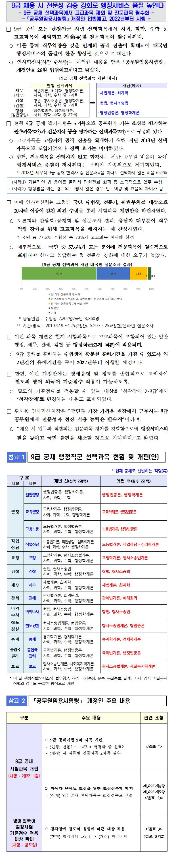 ★ 인사혁신처 9급 공채 선택과목에서 고교과목 제외 및 전문과목 필수화