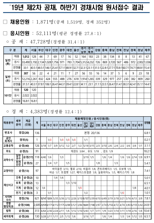 ▶ 2019 경찰청 경찰공무원 제2차 순경 공채 및 하반기 경채시험 경쟁률