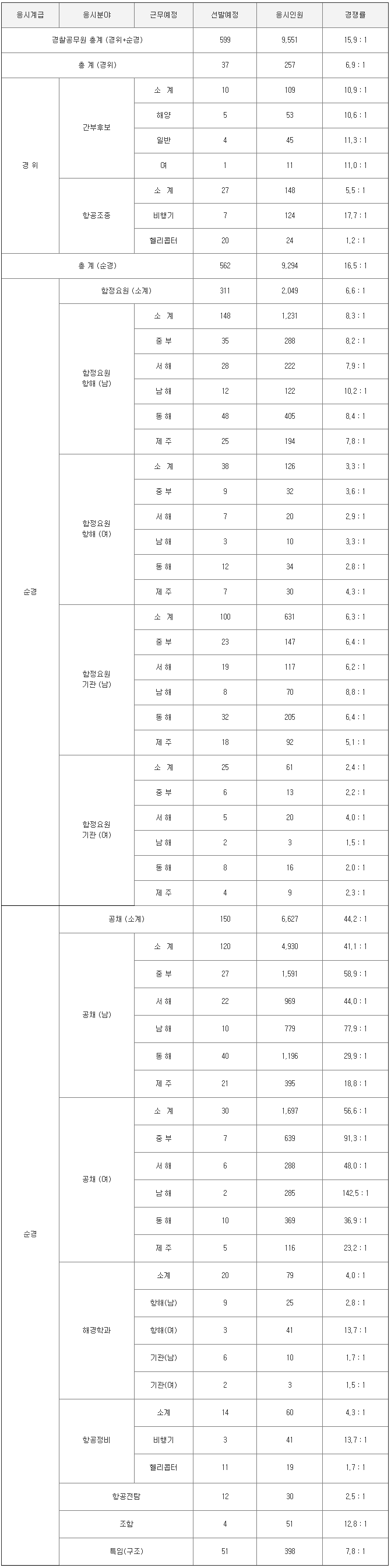 ▶ 2019 제3차 해양경찰청 경찰공무원 채용시험 경쟁률