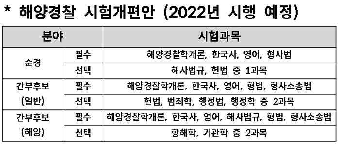 • 해양경찰공무원시험도 2022년부터 고교과목이 폐지된다.