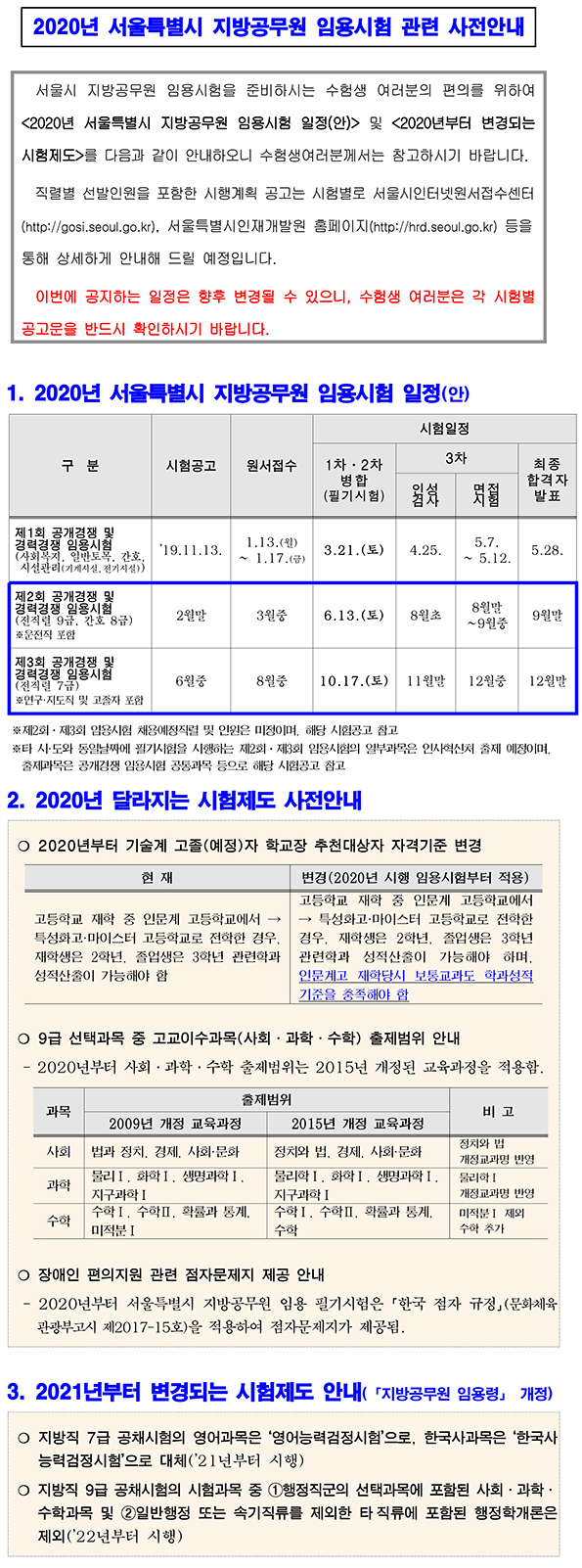 ★ 2020 서울시 지방공무원 임용시험 관련 사전안내