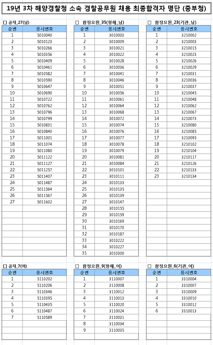 ★ 2019년 제3차 경찰공무원 채용 최종 합격자 알림 (중부청)