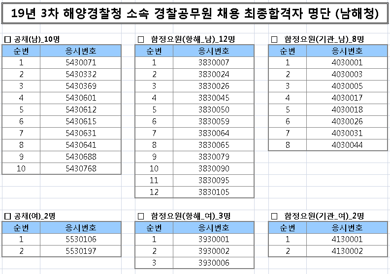 ★ 2019년 제3차 경찰공무원 채용 최종 합격자 알림 (남해청)