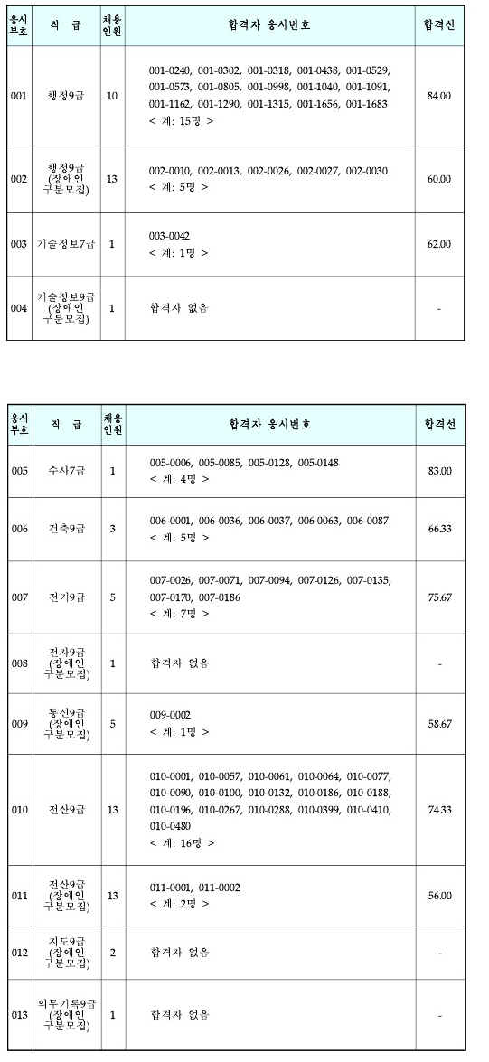 ▶ 2019 제2차 국방부 주관 일반군무원 채용 필기시험 합격선