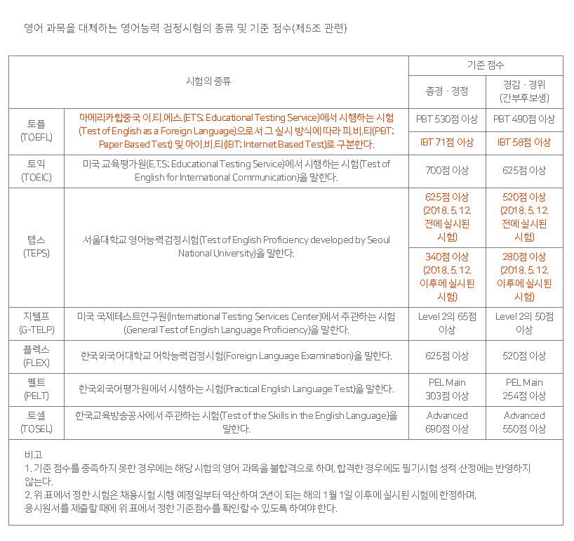 ※ 해양경찰 간부후보생 영어 시험 종류 및 점수
